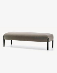 - Gri Keten Kumaşlı Masif Ahşap Ayaklı Dikdörtgen Bench Puf