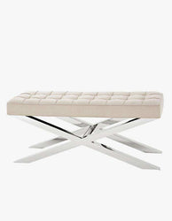 - Krem Keten Kumaşlı Dikdörtgen Kapitoneli Paslanmaz Bench