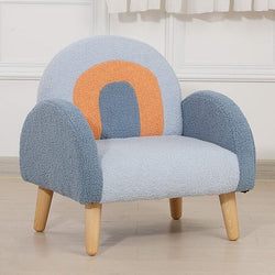 - Mavi Turuncu Gökkuşağı Teddy Kumaşlı Ahşap Ayaklı Çocuk Odası Berjer Koltuk