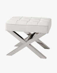 - Beyaz Suni Deri Kare Kapitoneli Parlak Krom Metal Ayaklı Puf
