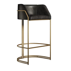 - Deja Siyah Suni Deri Kollu Metal Ayaklı Gold Eskitme Cilalı Bar Sandalyesi
