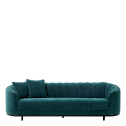 - Agostino Sırtı Dilimli Detaylı Siyah Ahşap Ayaklı Yeşil Şönil Kumaşlı Kanepe Sofa