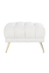 - Huxley beyaz teddy bukle kumaşlı kapitoneli gold kaplama konik metal ayaklı kare puf