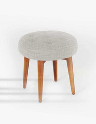 -  Yuvarlak Açık Gri Keten Kumaşlı Ahşap Konik Ayaklı Tabure Puf