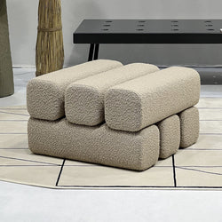 - Ethnicraft krem rengi süet kumaşlı radyüslü kare puf