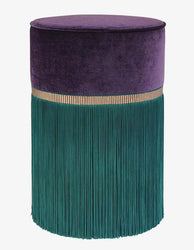 - Mor Kadife Kumaşlı Yeşil Püsküllü Yuvarlak Puf