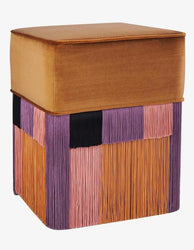- Karamel Rengi Kadife Kumaşlı Çok Renkli Püsküllü Kare Puf