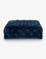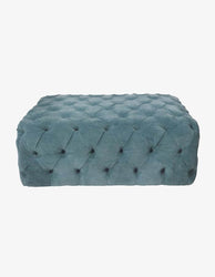 - Mavi Kadife Kumaşlı Kapitoneli Düğmeli Kare Puf