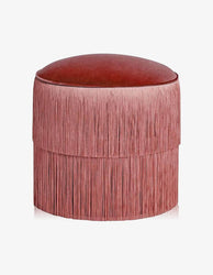 - Pudra Rengi Kadife Püsküllü Detaylı Yuvarlak Puf