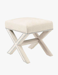 - Krem Rengi Kadife Çapraz Ayaklı Kabaralı Zımbalı Ahşap Puf