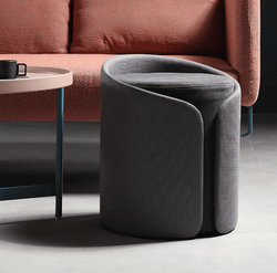 - Gri Keten Kumaşlı Yuvarlak Mini Sırtlı Kavisli Puf