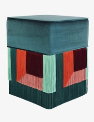 - Çam Yeşili Kadife Kumaşlı Çok Renkli Hareketli Püsküllü Kare Puf