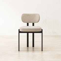 - Kashmir Krem Rengi Keten Kumaşlı Sırt Balinli Dikiş Detaylı Metal Ayaklı Sandalye