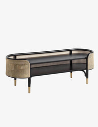 - Naturel Bambu Hazeranlı Siyah Ahşap Rattan ve Pirinç Rengi Pabuç Detaylı Hasırlı Bench