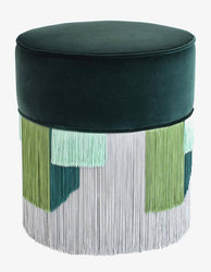 - Koyu Yeşil Kadife Kumaşlı Çok Renkli Hareketli Püsküllü Yuvarlak Puf