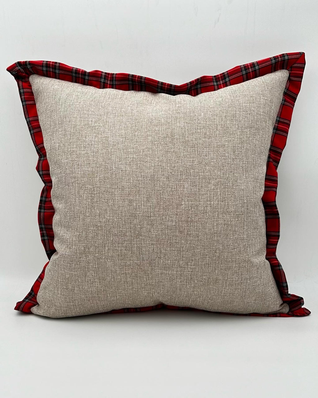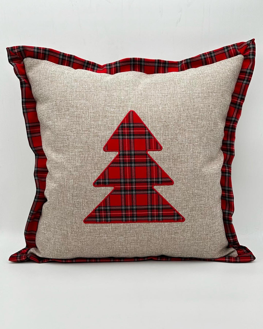 Kırmızı Çam Ağacı Ekose Aplikeli Yılbaşı Konsepti Kare Kırlent