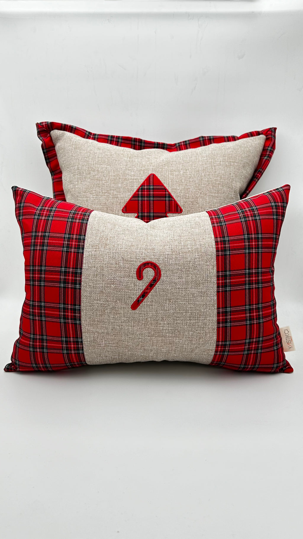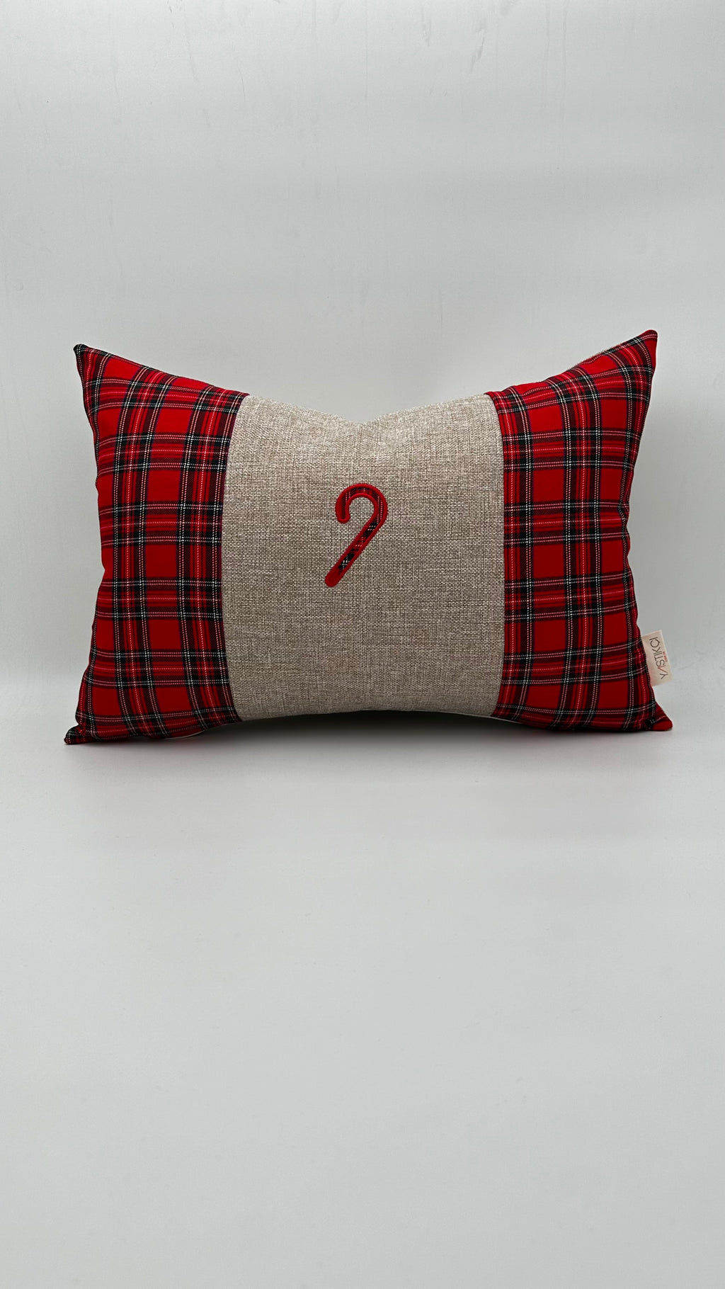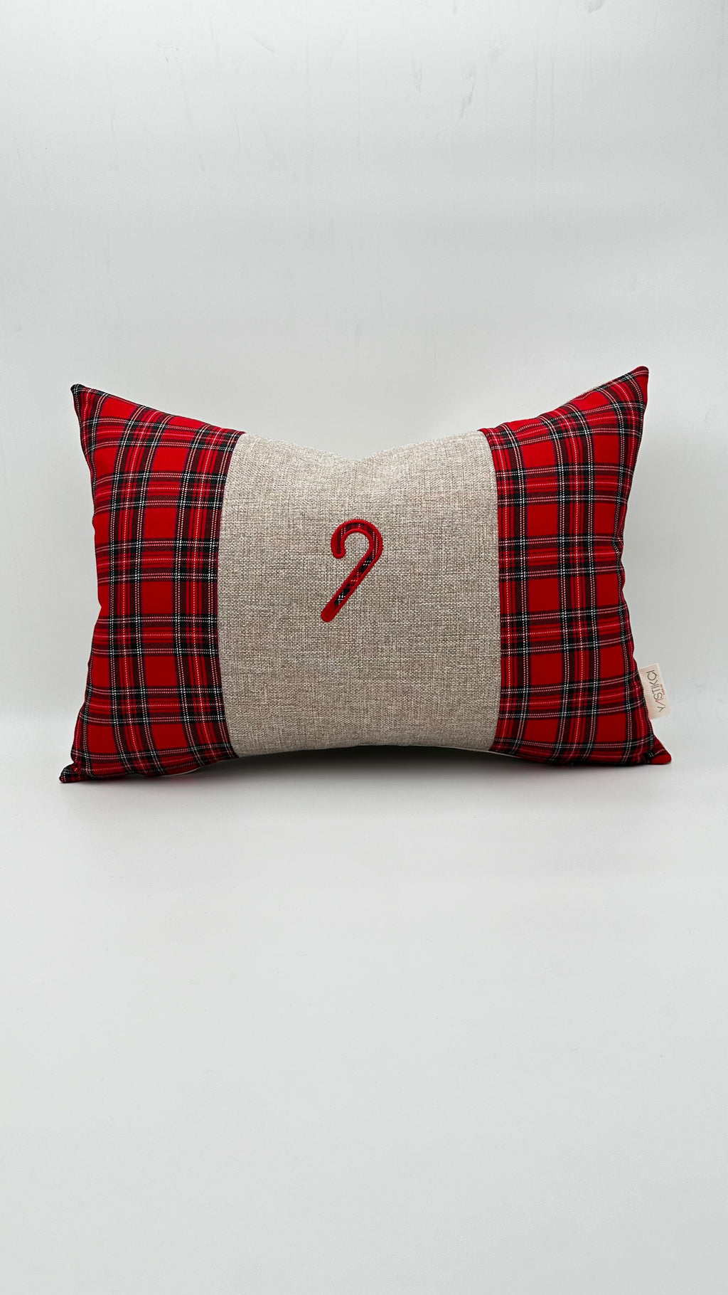Kırmızı Ekose Baston Şeker Aplikeli Yılbaşı Konsepti Dikdörtgen Kırlent